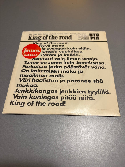 Utopia: King Of The Road, 7inch, Single Sided, Commercial single of Finnish James jeans, Only pressing, James, Finland 1970