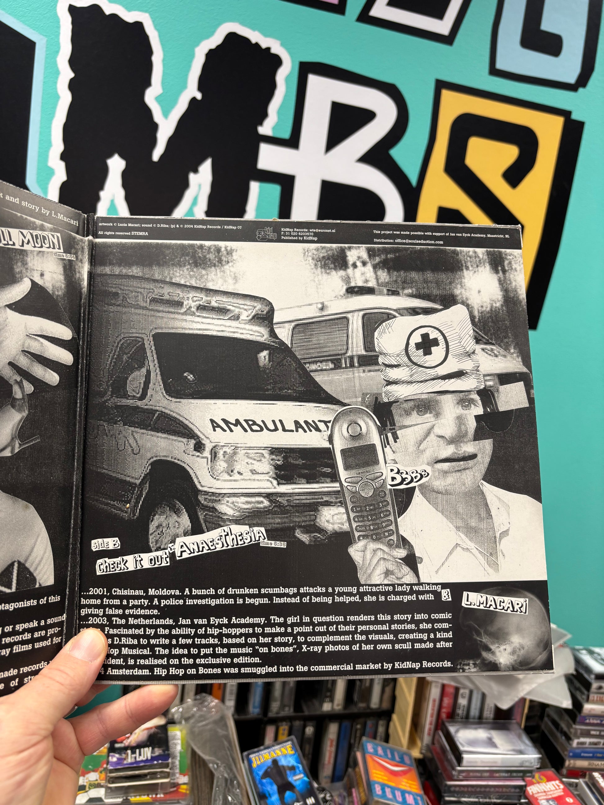 D. Riba & Lucia Macari: Hip-Hop Bones Vol. 1, 10inch, Only pressing, Gatefold, Limited Edition, Numbered, KidNap Records, Netherlands 2005