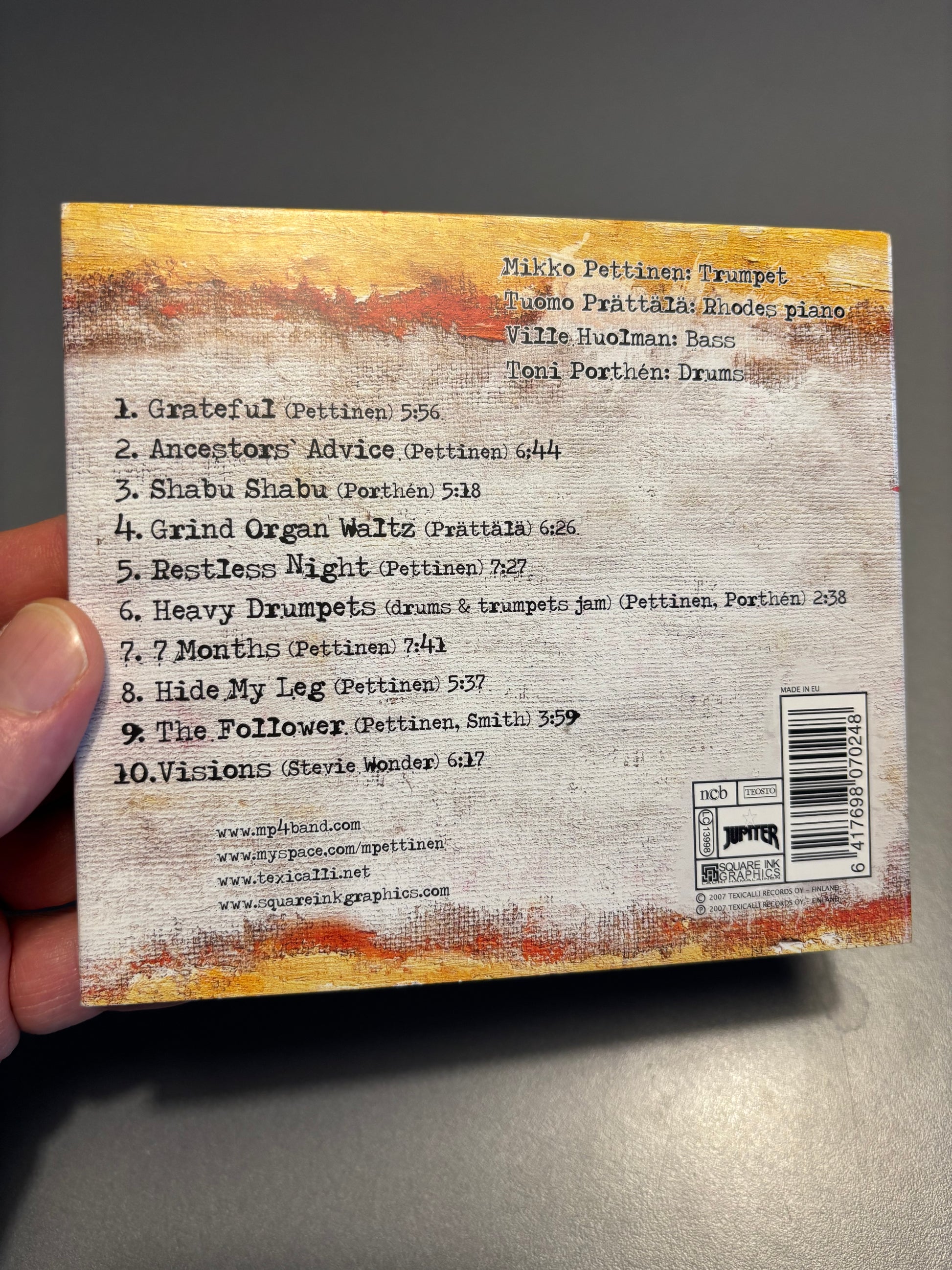 Kunnon rytmipommijazzia vuoden 2007 Suomesta!!!<3 Bändi koostuu seuraavista herroista: Mikko Pettinen (trumpet), Tuomo Prättälä (Rhodes piano), Ville Huolman (Bass) ja Toni Porthén (drums). Ainoa painos!!! VAHVA SUOSITUS!!!<3