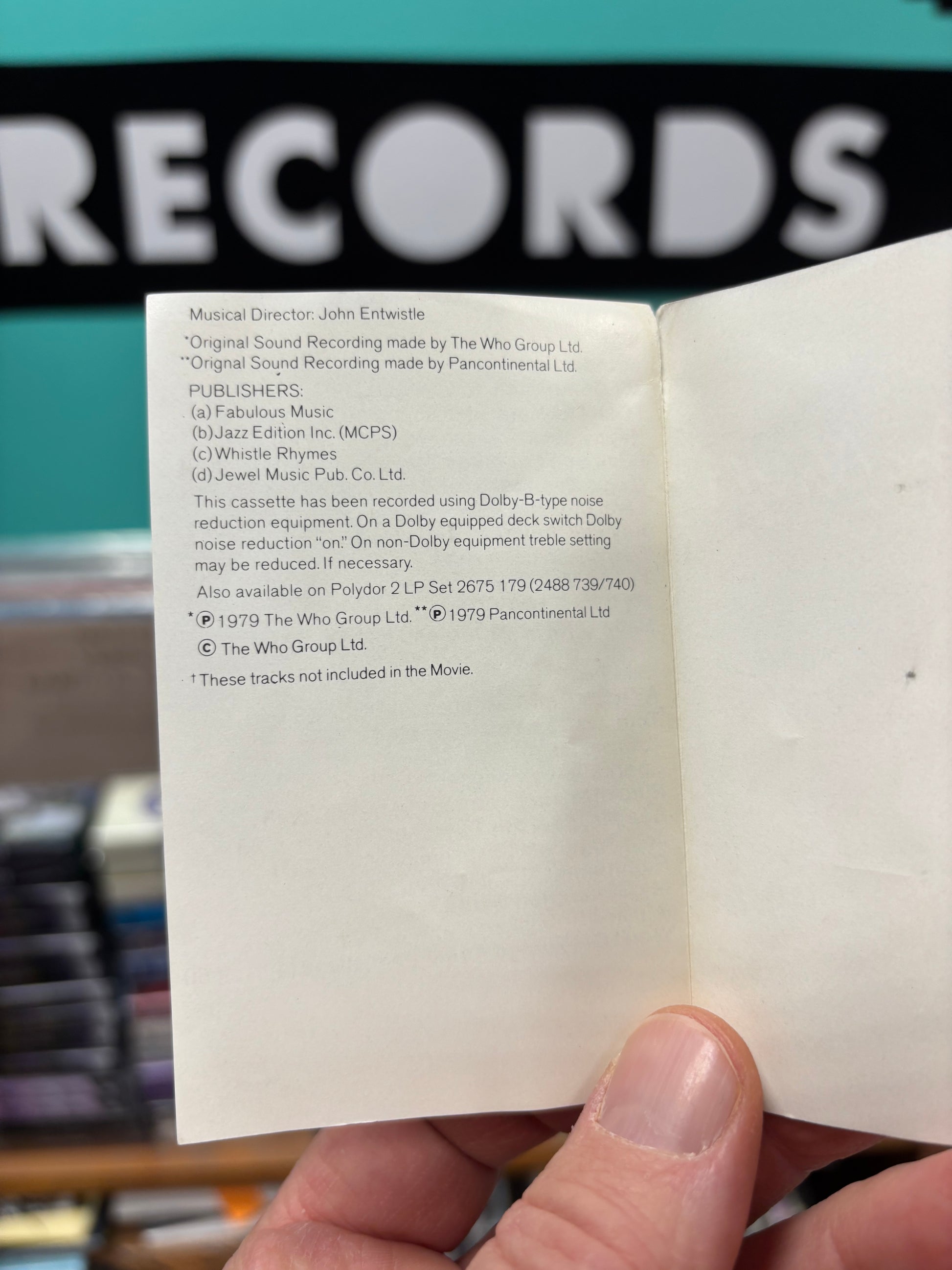 Total legendary rock soundtrack by iconic The Who - orchestra from 1979 London!!!<3 Long cassette, 2LP amount of music! Insanely rare!!! ABSOLUTE MUST HAVE!!!<3